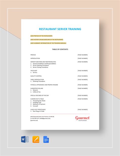 Read Online restaurant server training manual template Doc online is a convenient and frugal way to read restaurant server training manual template you love right from the comfort of your own home. Yes, there sites where you can get Doc "for free" but the ones listed below are clean from viruses and completely legal to use.